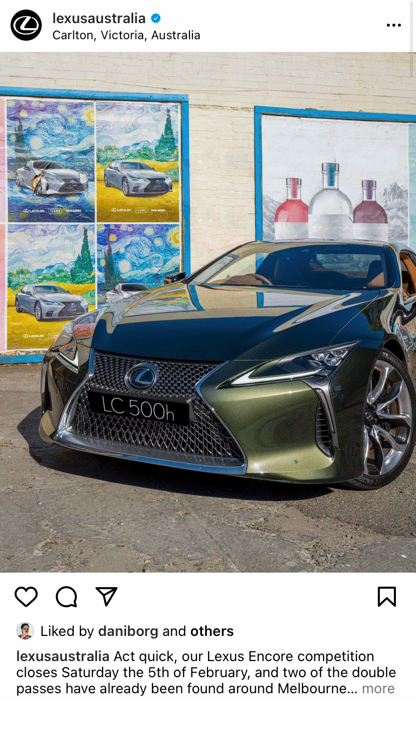 Lexus, the proud presenter of the Van Gogh exhibition at LUME Melbourne, wanted to promote awareness of both the immersive exhibition and the all new Lexus models on display within it.